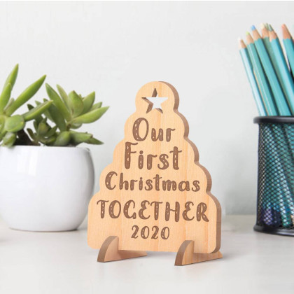 Personalized Christmas Tree Shaped Our First Christmas Together Wooden Card