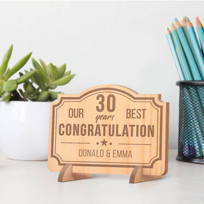 Staying married and in love for 30 years is not a mean feat. Celebrate the couple in your life marking the 30th year marriage anniversary by getting them this Personalized Couple's Names 30 Years Anniversary Wooden Gift Card. It will make them grateful to know that there are people praying and supporting them in their marriage. The card is made of alder wood and can be personalized with the couple’s names. Not only will this wooden card serve as a fond keepsake gift, but it can double up as house décor and will look good placed on tables, shelves, counter tops, office desk, bedside table, etc.
