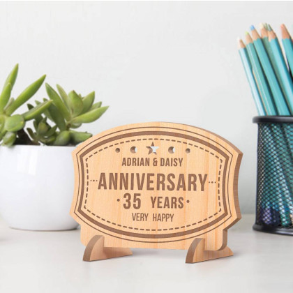Staying married and in love for 35 years is not a mean feat. Celebrate the couple in your life marking the 35th year marriage anniversary by getting them this Personalized Very Happy 35 Years Anniversary Couple's Wooden Gift Card. It will make them grateful to know that there are people praying and supporting them in their marriage. The card is made of alder wood and can be personalized with the couple’s names. Not only will this wooden card serve as a fond keepsake gift, but it can double up as house décor and will look good placed on tables, shelves, counter tops, office desk, bedside table, etc.
