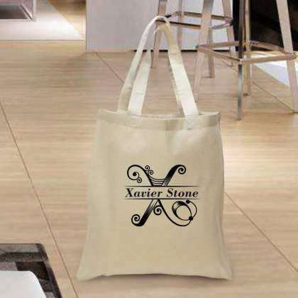 Personalized Initial and Name Cotton Tote Bag with Natural Handles