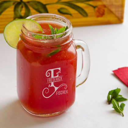 Personalized Initial and Name Mason Jar, Drinking Jar with Handle 16 oz