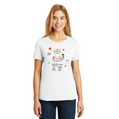 Personalized Keep Calm & Kiss Me, Ladies Valentines Cotton T-Shirt, Hanes