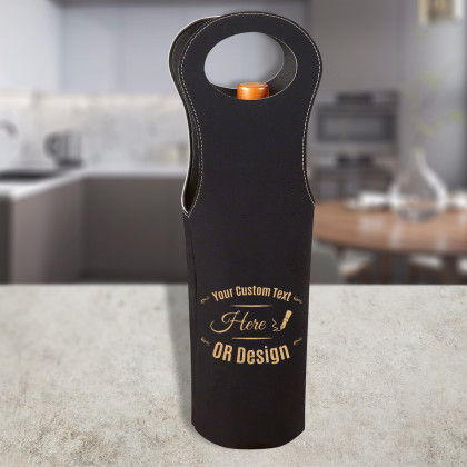 Each one is permanently laser marked into the faux leather giving it that unique touch. Now let the world know who owns the best wine in the world with this wine bag. This sturdy bag can easily hold one standard wine or champagne bottle.