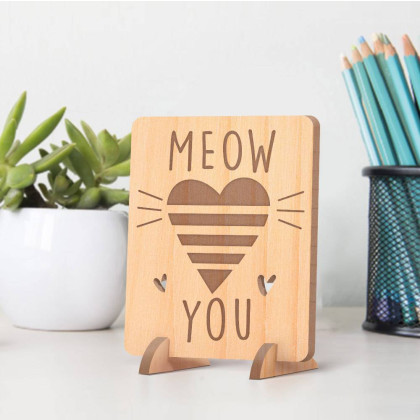 Does your significant other love cats? Then they will definitely love this gesture of a Personalized Meow I Love You Valentines Wooden Gift card. Remind them of your unfailing love by gifting them this card made of alder wood. The Wooden Valentines card can be personalized with the name of the recipient if you wish. It will make a cherished keepsake gift that will always bring a smile to their face they think of you.