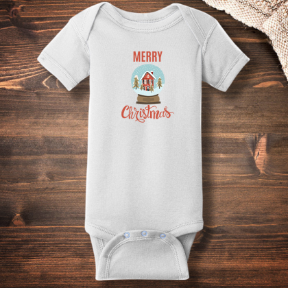 Personalized Merry Snowy Chrismtas Short Sleeve Baby Rib Bodysuit