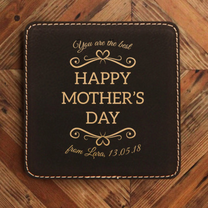 Personalized Mom Coasters for Drinks, Leather 6-Coaster Set for Mom, Happy Mothers Day Gifts