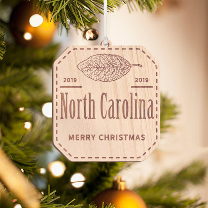 Personalized Octagonal Wooden North Carolina Merry Christmas Ornament