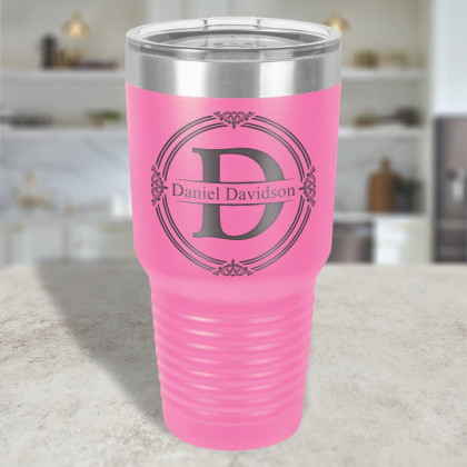 This tumbler is laserable and can be customized with a special name, initials, message or dates for gifting.