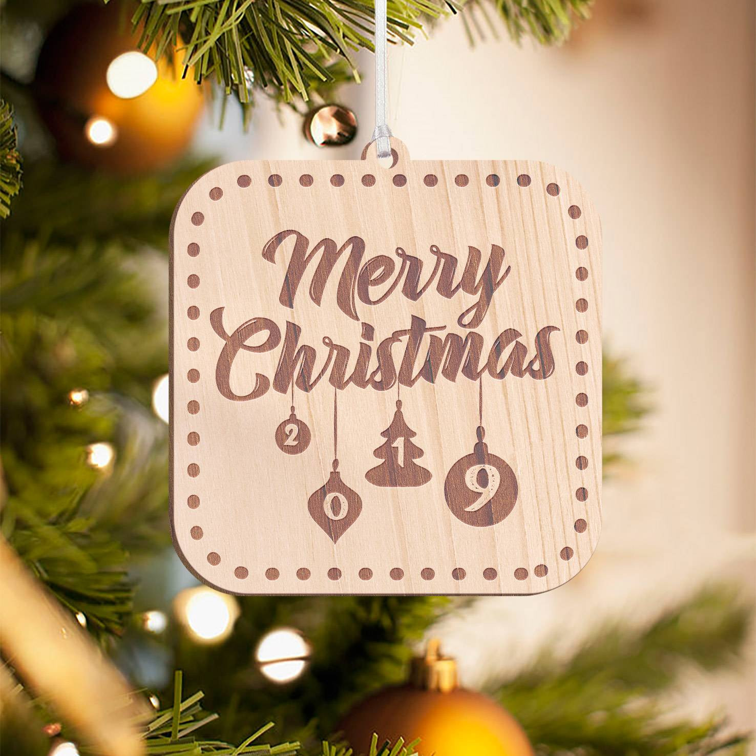 Personalized Square Wooden Christmas Shapes Merry Christmas Ornament