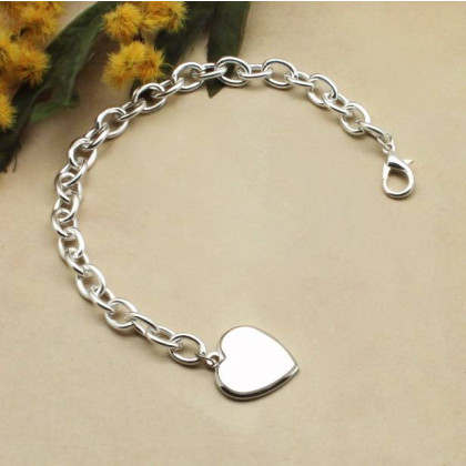 Personalized Sterling Silver Plated Braclet with Heart Pendant