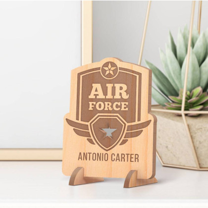 US Air Force Airmen dedicate their days working on flight support missions, handling base affairs, protecting bases, constructing new airstrips, guarding missile sites, even doing rescues. Citizens who give their lives to work for the Air Force deserve recognition and appreciation for their selfless work. This Personalized US Senior Airman Wooden Military Gift Card is a befitting gift to a Senior Airman during all gifting seasons. The card is made of alder wood and can be personalized with the name of the Senior Airman and Air Force logo belonging to his division. Not only will this wooden card serve as a fond keepsake gift, but it can double up as house décor and will look good placed on tables, shelves, counter tops, office desk, bedside table, etc.