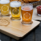 Personalized Wedding 4 Core Beer Flight Pub Taster Glasses with 4 Holed Rustic Wood Sampler Tray