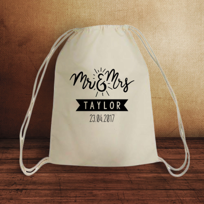 Personalized Wedding Natural Canvas Drawstring Backpack / Cinch Packs