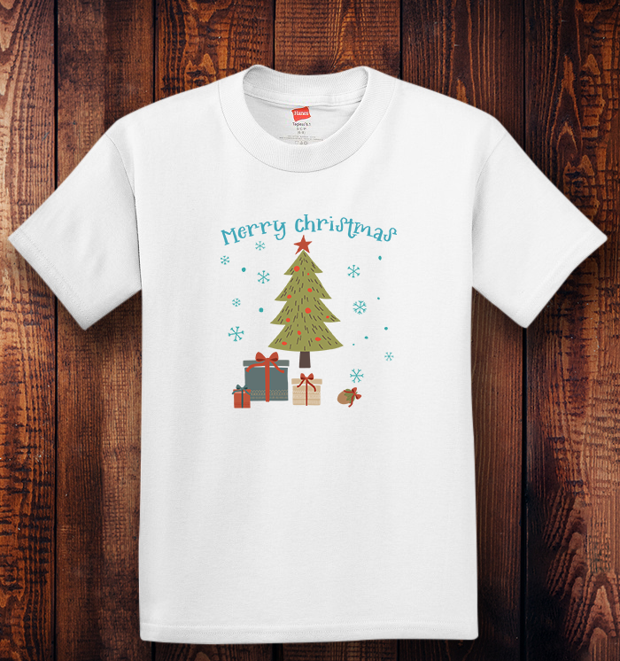 Personalized Youth Tagless Merry Christmas, 100% Cotton T-Shirt, Hanes