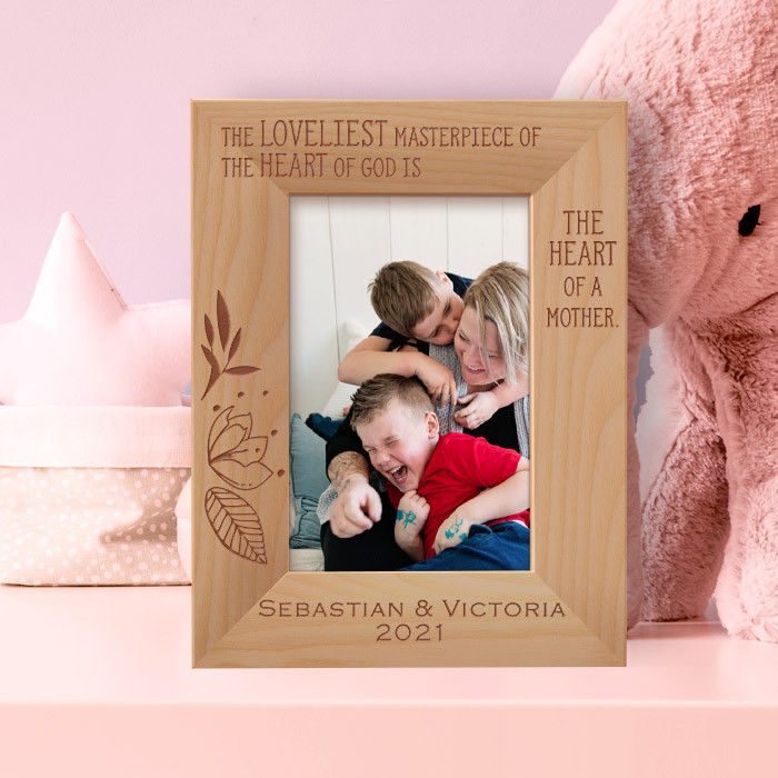 The Loveliest Masterpiece Of The Heart Of God Is The Heart Of A Mother Personalized Wooden Frame