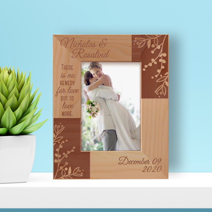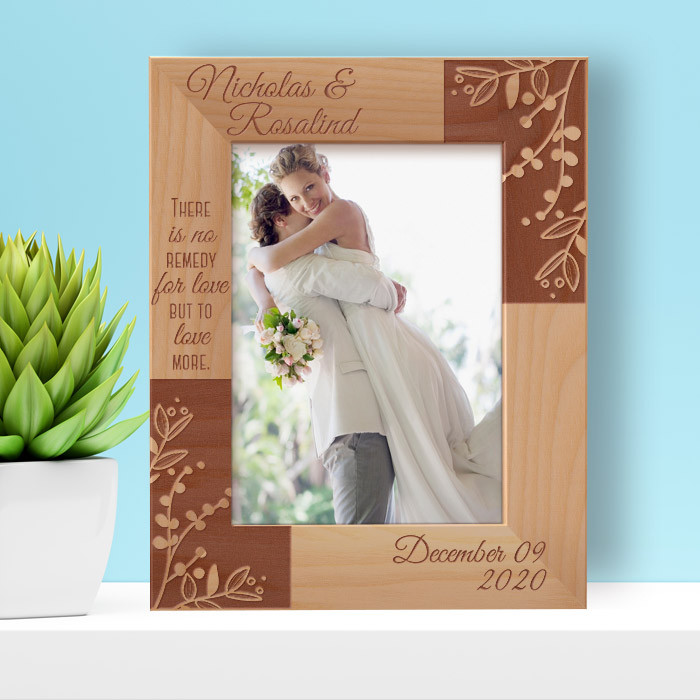 Are you looking for the perfect wedding frame? Well, this personalized wedding frame is what you need! It has a beautiful design that is unique and stylish. It is made of high-quality wood that makes it highly durable and long lasting. Your wedding photo is of great value. Therefore, you definitely need a well-crafted frame to make sure the photo is preserved. Well, this personalized wedding frame is the your best choice!