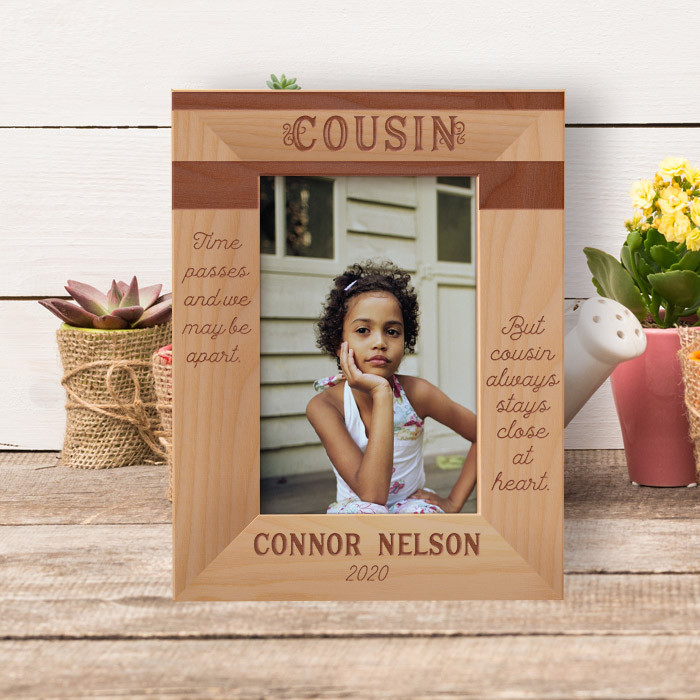 It comes with two easy to use options; you can hang the personalized frame on the wall or make it stand on any flat surface. Since it is frame made of high-quality wood and crafted with perfection, it is something your cousin would love to display at their home.