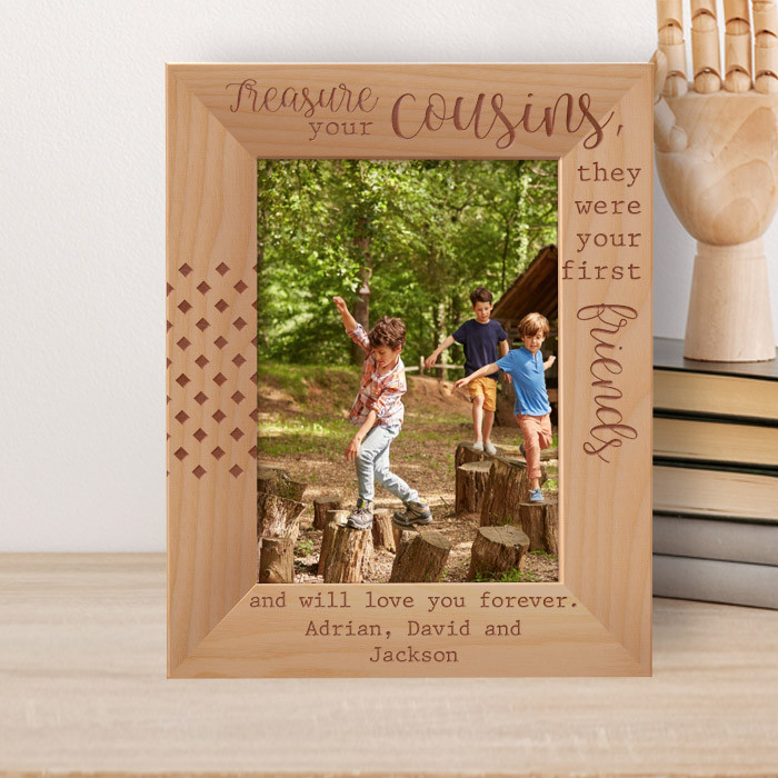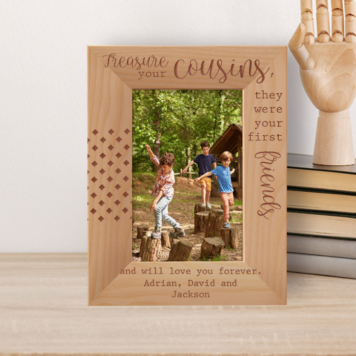 It comes with two easy to use options; you can hang the personalized frame on the wall or make it stand on any flat surface. Since it is a frame made of high-quality wood and crafted with perfection, it is something your cousins would love to display at their home.