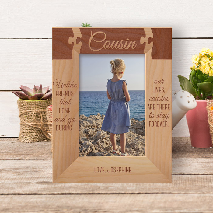 It comes with two easy to use options; you can hang the personalized frame on the wall or make it stand on any flat surface. Since it is frame made of high-quality wood and crafted with perfection, it is something your cousin would love to display at their home.