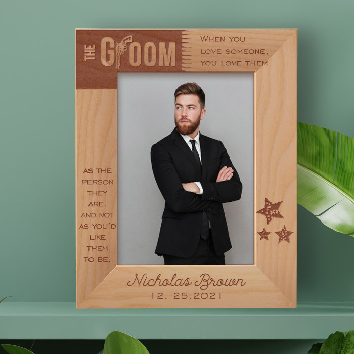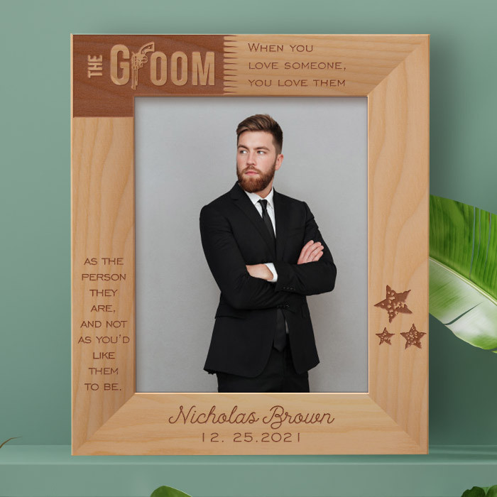 Is your friend getting married, or is his wedding day near, and you want to give him a unique gift? Does he enjoy having a nice frame in their room? Then you must get him this personalized frame, which, should be dear to his heart. This frame for groom is completely adjustable and comes in a variety of sizes and forms. As a home décor item, you may put this wonderfully designed frame anywhere you choose.