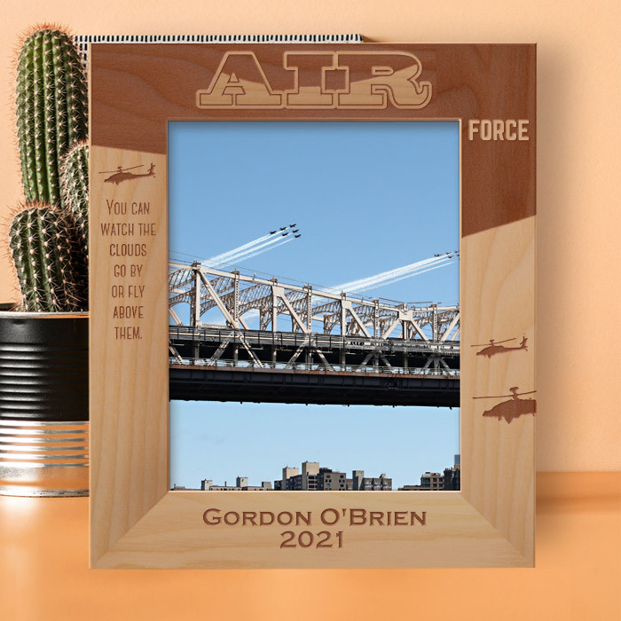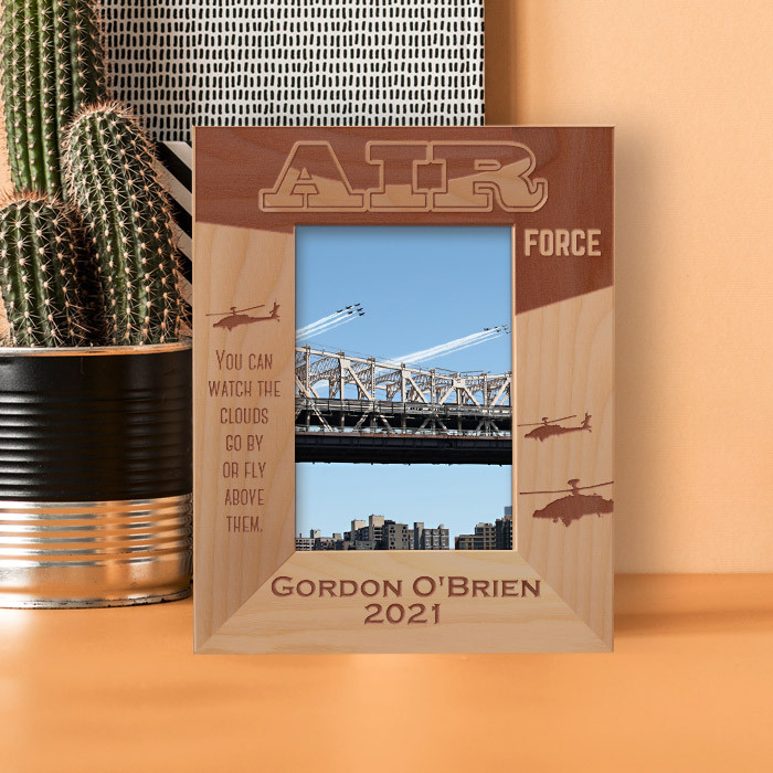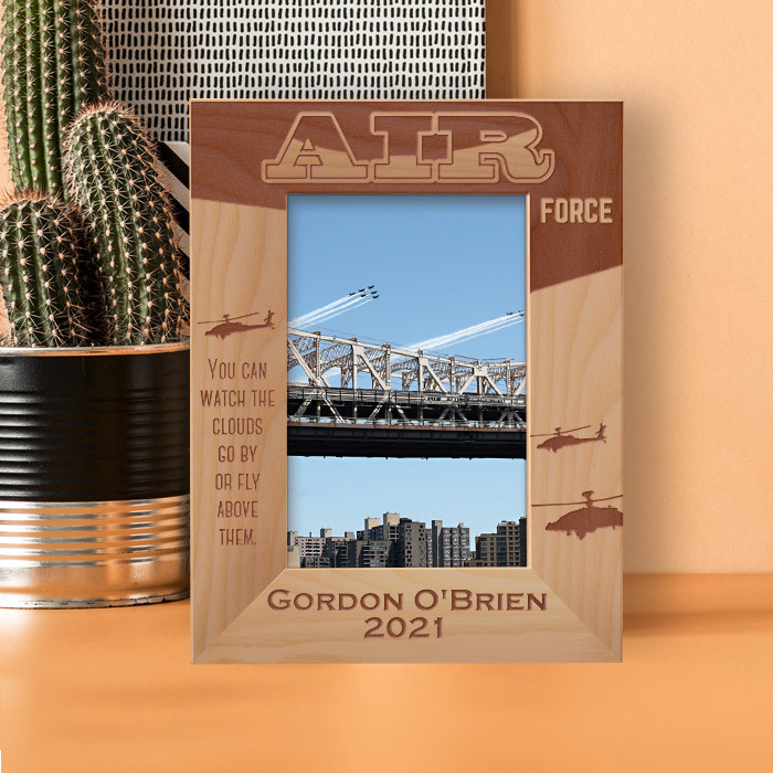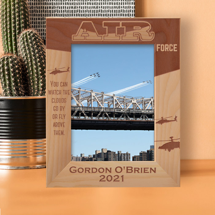 This personalized air force wooden frame is an ideal gift choice because it can easily be put for table top display vertically or horizontally, and hung on the wall as well. This personalized air force frame comes in a variety of sizes and shapes too. Therefore you can display your best photograph with a high-quality frame like this one.