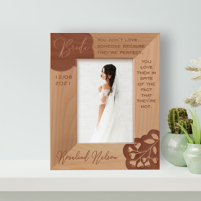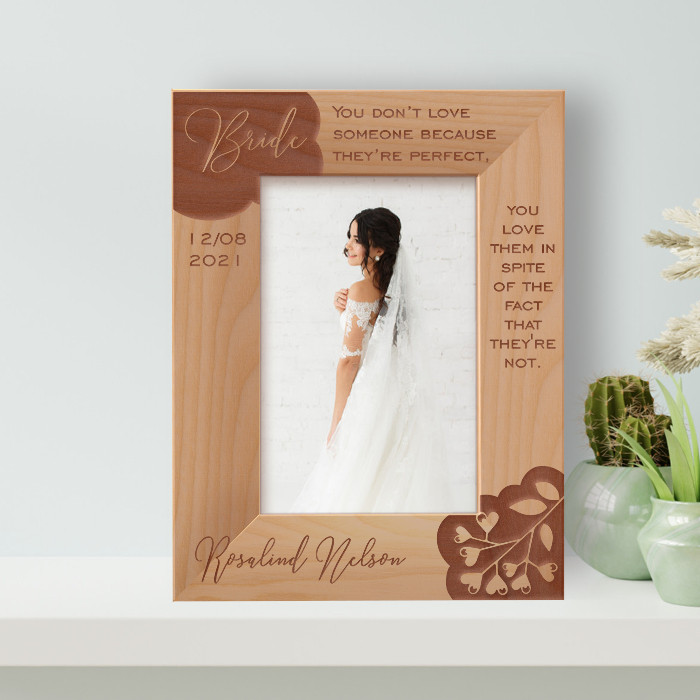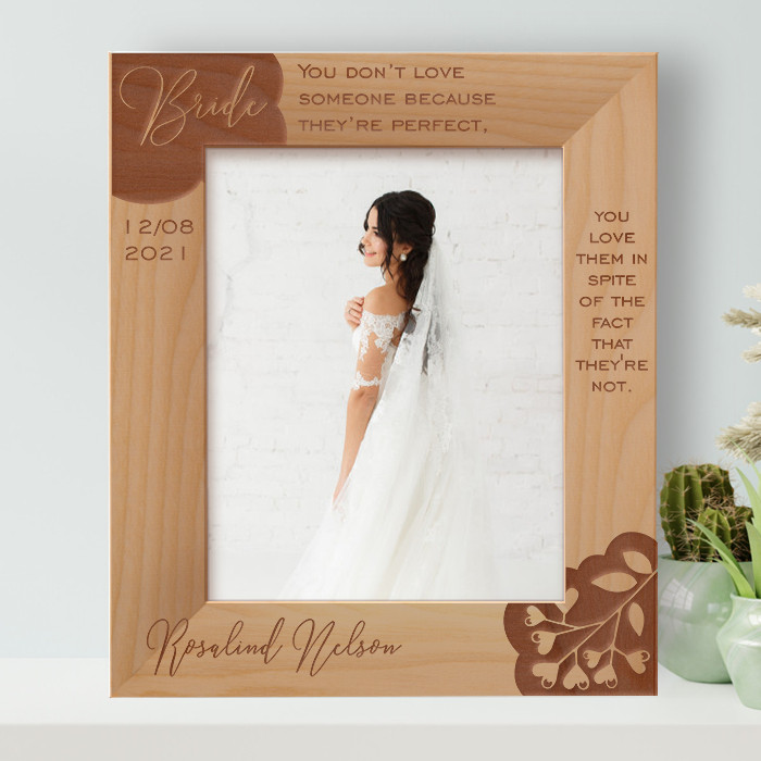 This personalized bride frame allows you to modify it in any manner you desire. As a result, presenting the gift to that special someone will undoubtedly brighten their day! This high-quality, personalized frame is available in a range of sizes and forms.