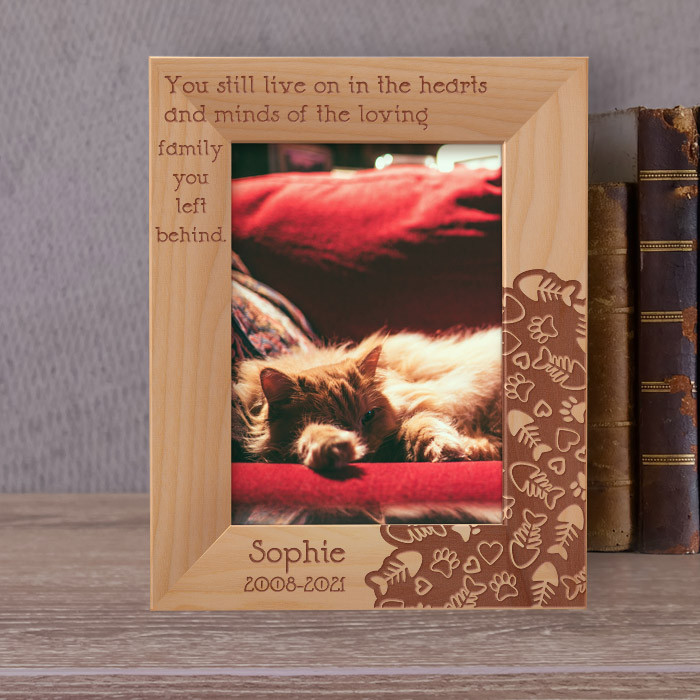 It is the perfect gift choice to give in loving memory as a tribute to a petthat will always be remembered. It is a heartwarming gift that makes a thoughtful sympathy gift. Designed with excellence and high-quality wood, this personalized memorial frame will make sure the picture of the petthat has passed away remains safe and close to you.